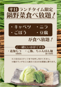 5/28~6/30 平日ランチ鍋野菜食べ放題開催!